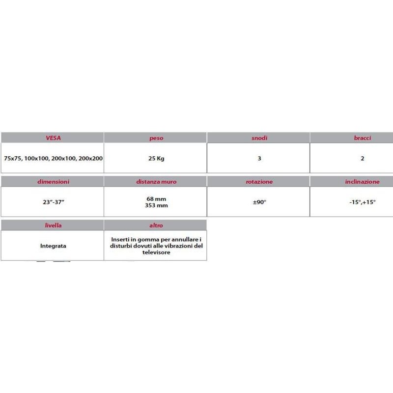 | VESA (millimetri) | 75X75; 75X100; 75X200; 100X100; 100X200; 200X200 |