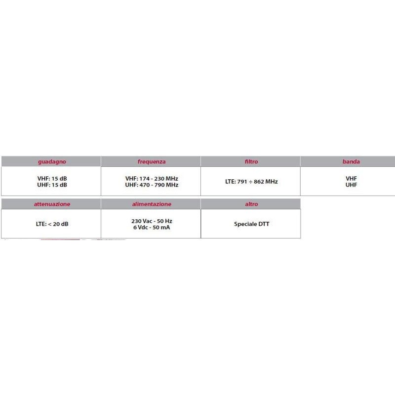 | attenuazione | LTE: min. 20 dB |